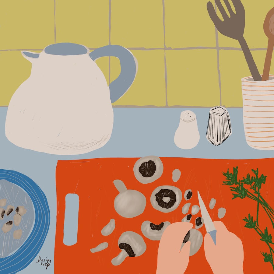 When creating it, I loved using little pops of red and dark hues to complement the lighter pinks, yellows, and beiges. Pictufy provided these lovely interior mockups to show how my artwork looks framed in a home.